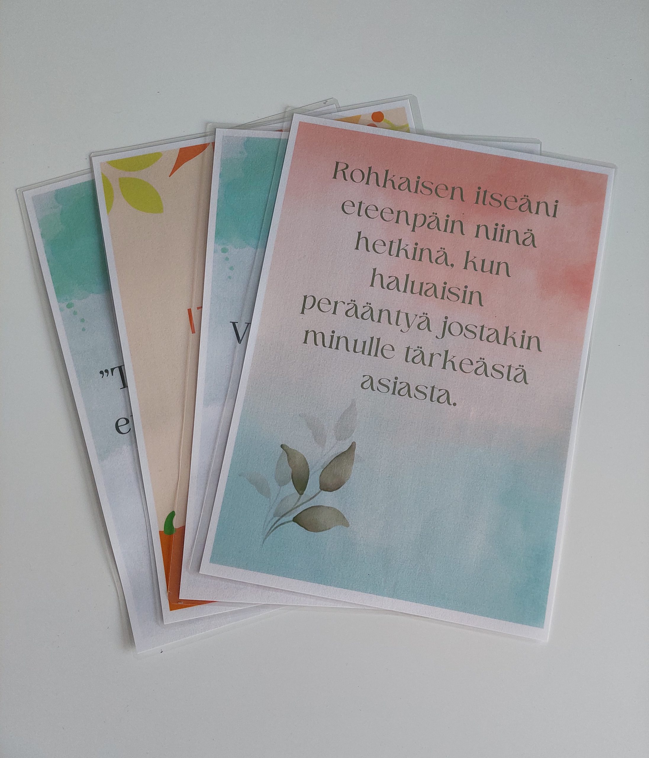 Omien rajojen tunnistamista on mahdollista opetella, samoin kehittää kykyä ilmaista niitä rauhallisesti, mutta jämäkästi. Samalla kunnioittaen toisten tarpeita. Tämä vähentää työuupumusta ja lisää uskoa omiin voimavaroihin!